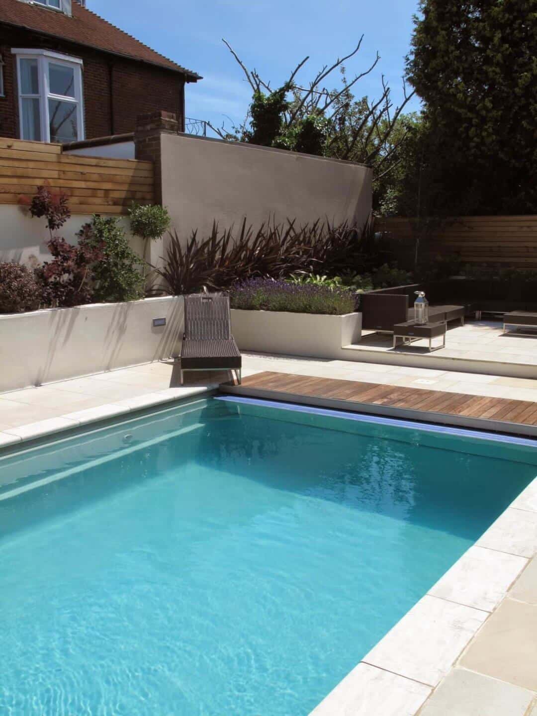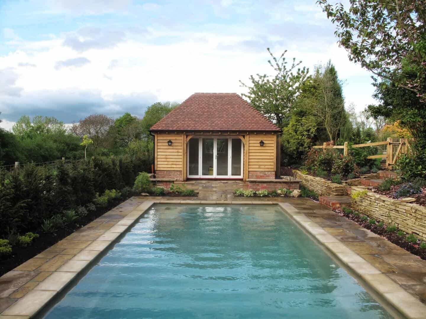 A successful swimming pool design should factor in more than just the pool itself. The surrounding paving needs to be hygienic and safe for those using the pool, and there are various materials you can choose. Wood adds a rustic, traditional look to your swimming pool and can be warm to the touch, while marble is cooler and adds an elegant appearance. Natural stone absorbs very little water and is easy to maintain, while a low-cost alternative is cement which doesn’t require much maintenance.