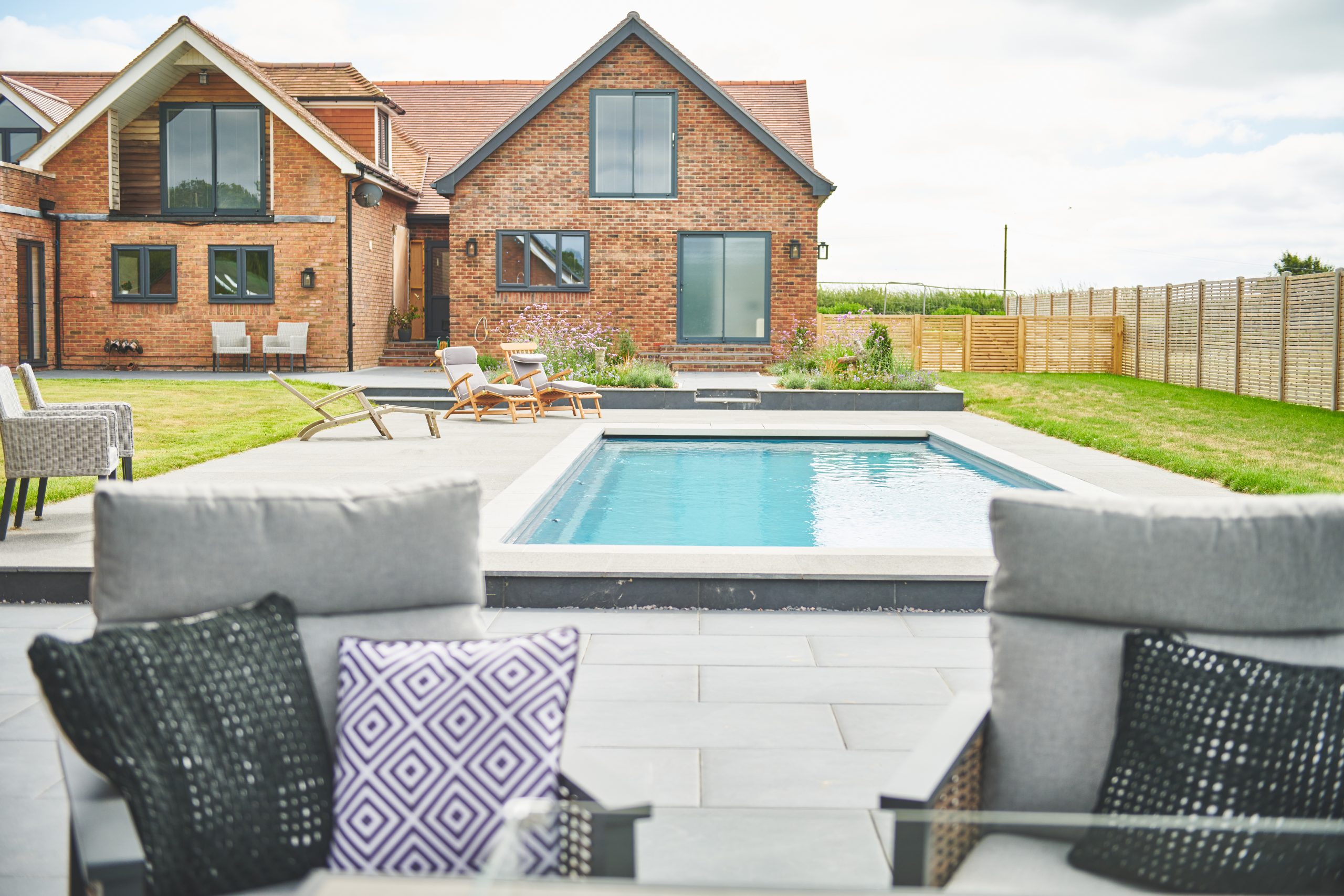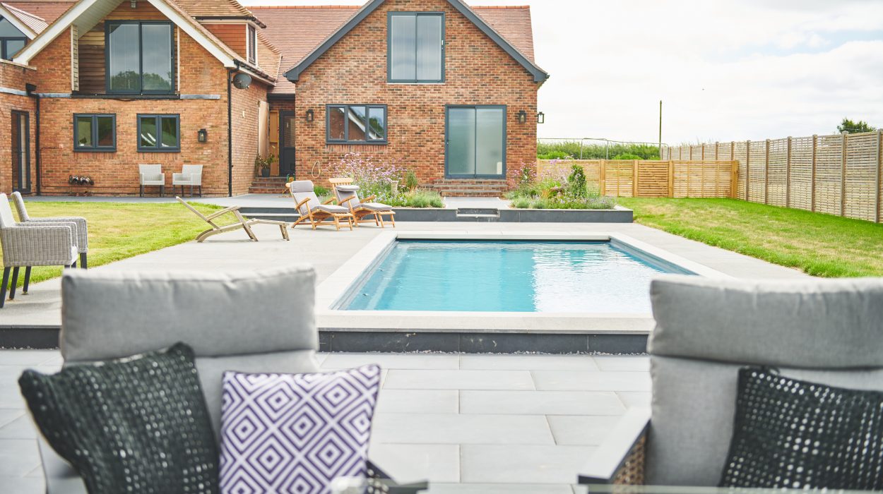 Our client was looking to create a pool area which is both modern but tied in with the styling of their country home. They wanted a space where they could relax, have fun with the family and host get-togethers with friends, while at the same time improving the aesthetics and value of their property.