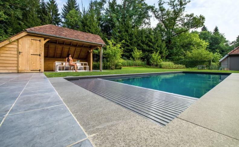 Slatted covers are made from interlocking PVC or Polycarbonate. They can be installed in pools either underwater, or on an above-ground roller, resting on the water’s surface and relying on the pool’s natural physical properties to float. They can be opened and closed using a 24volt (low voltage) drive motor, with the most common type of slats being solar PVC. They are hollow (like a double-glazing panel), coloured black underneath a clear top layer, and have a vacuum which heats up. They also have an air gap to prevent heat loss through the cover during the night.