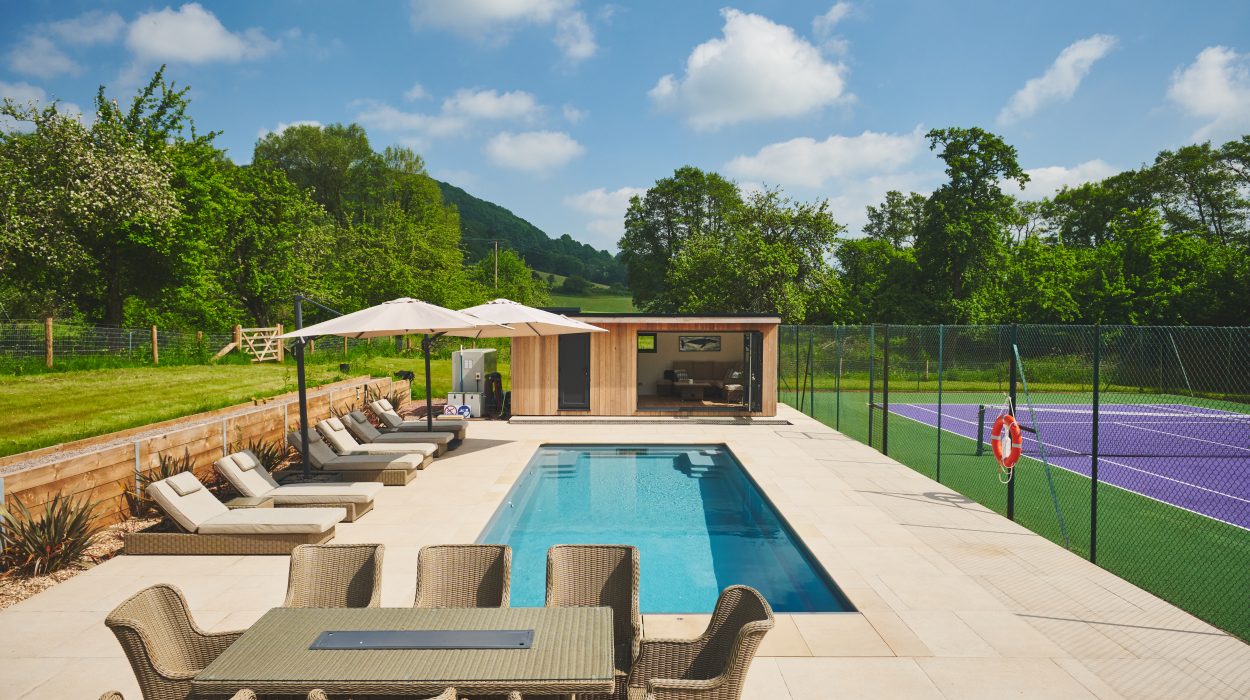 The client envisioned a sophisticated and elegant swimming pool that would complement and elevate the natural beauty of their expansive rural home. The goal was to design and construct a pool that would seamlessly integrate with the surrounding countryside, offering a tranquil retreat and a versatile space for both relaxation and fitness.